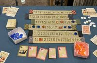 1. Dodicitr3, by Taiki Shinzawa, designer of American Bookshop, Inflation!, and Shut the BooksDodicitr3 is a shedding game in which you want to be the first one to empty your hand of cards. What’s interesting about this game is that cards range only from 3-12,, but the 11s can be used as two 1s and the 12s as a 1-2 run. You can add cards to your tableau to create a longer run or set. (¥2500)
