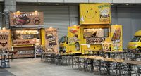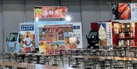 Yes, food trucks and vending machines are in the outside hall areas for dining and keeping yourself hydrated. Be sure to bring at least two additional bottles of water for the spring Game Market as it was extremely hot and humid when I went there. Should you want more food, a food court can be found in a five-minute walk from the Messe that features Yoshinoya (a Japanese rice bowl chain), Taco Bell, and other options.