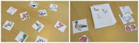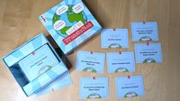 The basic idea worked from the start: We placed ten answer cards featuring different animals on the table. A statement like “Has more then 20 teeth” or “Can be found in Europe” is read aloud. Then each player takes one turn. They take an animal card from the middle if they think the statement applies to it, or they pass, then the question card is flipped to reveal the answer. Every player who correctly chose a card gets a point. Also, every player who has no cards in front of them gets a point IF no correct card has been left in the middle. Easy and quick.