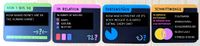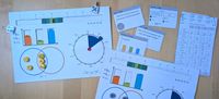 I tried different options and came up with four types of diagrams, starting with the original single-bar chart for answering questions with a number from 1 to 50. Then I made another bar chart with three bars with which you have to figure out the relation, i.e., which is the highest, middle, and lowest bar. I made a pie chart, with which you guess percentages. That took a while, but I figured out how to build it so that it opens and closes smoothly.