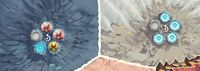 A key piece of the puzzle was deciding that eggs should also cover spark vents, the game’s main resource. In theory, every region starts identical: each has a set number of open vents, with each of them depicting a spark icon. The more open vents a region has, the more spark can be harvested there. This created a second layer of tension: as eggs accumulate in a region, it edges closer to triggering a battle — but at the same time, fewer vents remain open for harvesting spark.