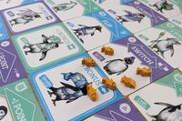 After a successful pitch to Molinarius Games Ltd, we brought in a team variant, allowing players to buddy up and added multiple ‘points chests’ to add variety between games. We discussed themes ranging from wrestlers, pirates, beavers, kings vs queens, cats vs dogs and landed on penguins vs seals.