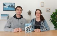 That’s us, Blaž and me (Nika), the SnowBoardGames team, with the prototype copy of our first game