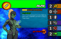 Oracle is a hacker who helps Robin — well, she helps the Dick Grayson Robin more, but that’s beside the point — by finding out information and “distracting” the bad guys with her hacking. How could we represent this idea in the game? Delphi (inspired by Oracle) can hack the bad guys and put them into disarray!