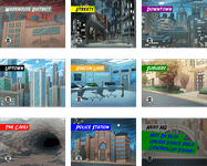 Some stuff was incredibly useful, so it seemed like you had to “pay” for it somehow. This introduced the idea of “leads”, and if you hunt down enough leads, you can find where Jor’s Hammer (I didn’t want to get sued), the Star Shield, or the Cave Warrior Car (which looks nothing like the Batmobile) would be stored! I originally considered having different kinds of leads, but dismissed this idea as it would be too frustrating if you got the wrong types of leads. Instead, leads were generic; if you got six leads, you could get the Cave Warrior Car, which would help you move around the city faster and protect yourself.