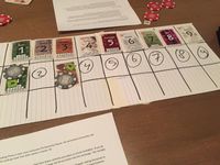 This system was first developed with pen, paper, and tape, and has changed a lot during the development phase. From this market board, calamities could resolve without a primary victim. Unlimited trade turns would mean way too much wealth compared to a regular game, so a limit of trading turns was added. During testing, players sometimes liked the system so much that they would play it as a game by itself. Eventually, this new trading system has proven to become the key difference to a regular game.