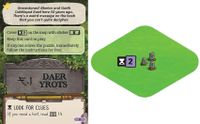 Let’s say that instead of exploring the tent, you decided to explore the gravesite. When you explore this site, the icon tells you to gain catalog card number 2. You draw that card and find a weird message written on the grave. Can you figure out what this means?