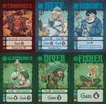 Merchants were the hardest to expand out. We ended up with only two: the Bard, who gains you a card from the top of the deck so that no one knows what you have, and the Doctor, who exhausts whichever card is played against him.
