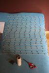 Instead what came to my mind was a thread with knots that would simulate the game space. This would have the advantage of fitting inside the box. I found thread at my place and tried this, but it didn’t work. The knots were too small, even if I made them triple-sized and were not easily visible.