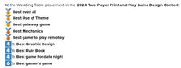 In 2024, I entered the game in a two-player print-and-play game design contest, and amazing people helped me by detecting potential issues with the game.