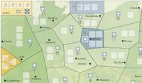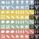 Counters have increasing strength values: Infantry, Armor, Aviation, Artillery, and Faction Flags, the latter acting as powerful wildcards. Stronger counters can defeat weaker ones, creating the feel of a contained micro-battle. After resolution, all counters are discarded except one belonging to the controlling player, which stays to mark control with a wooden cube on it. After six rounds, all players will have used their 18 counters, triggering the first Scoring Phase. Players then select 12 of their discarded counters to play the final four rounds.