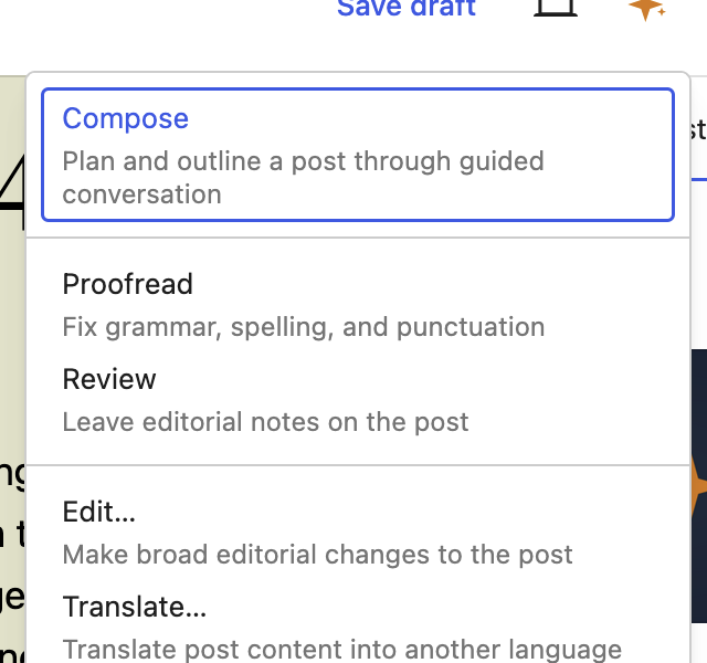 I always start Claude Code in planning mode, and I wanted that for posts, too. That’s where I started this post, and I can absolutely see myself using this every time I need to write a post. Not to do the writing for me, but to help me organise my thoughts. I opened the Compose mode in the sidebar, I had it summarise the changes that I’ve made in the last 2 weeks, and present a few options for how to collate them. Some I kept, some I dropped.