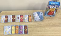 Given the quartet of Italian designers, you might not be surprised to learn that the “ice” you’re splitting is gelato. Each card features an objective on the left and a gelato flavor on the right, and each time you acquire a card you slide it under the left or right side of your row depending on what you want to keep. Once you have thirteen cards, your service is complete, and you tally your score.