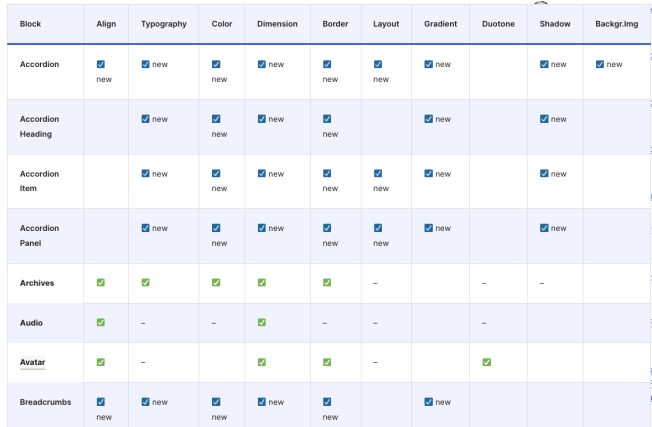 The latest Dev note arrival brings you Roster of design tools per block (WordPress 7.0 edition). I updated a previous version for WordPress 7.0, summarizing design support changes across the last ten releases. WordPress 7.0 adds seven new blocks — Accordion, Breadcrumbs, Icon, Math, Post Time to Read, and the Term Query family — and renames Verse to Poetry. I also removed the Pattern Overrides/Block Bindings column, since both features are now opt-in per block and attribute, making a single checkbox no longer meaningful.