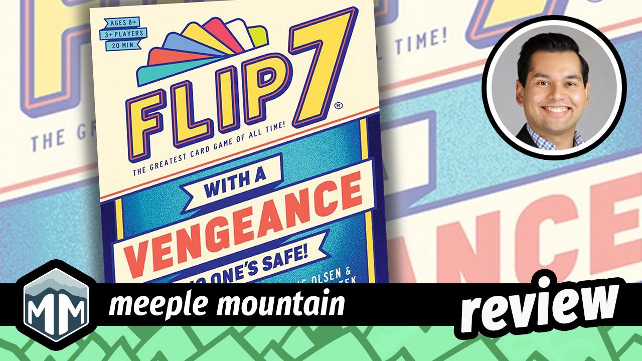 You Know the Name Flip 7 took the world by storm in 2023, touting itself as the “World’s Greatest Card Game.” It backed up that claim in 2024, taking home a slew of awards, including Origins Best Party Game, Golden Geek Best Party Game, and even a nomination for the 2025 Spiel des Jahres award. It’s also gaining recognition outside the gaming bubble. I recently had an interaction with coworkers in my office who wanted to play Uno, and I asked if they’d heard of Flip 7. To my surprise, more than one of them said yes with immediate excitement. Whether you love it or hate it, Flip 7 is almost a household name now. It’s only natural that a game in this format would spawn variations to keep the cash coming. Last year, we saw the Dr. Seuss’s Grinch variant, and I have an inside scoop that more reskins are on the way. Following on the heels of the Uno: No Mercy madness from a few years back, Flip 7 now has its own “mean” version, packed with ruthless cards and more stabbing. But how does it hold up against the original? Let’s flip the next card and find out. Same Flips, New Cards … The post Flip 7: With a Vengeance Game Review appeared first on Meeple Mountain.