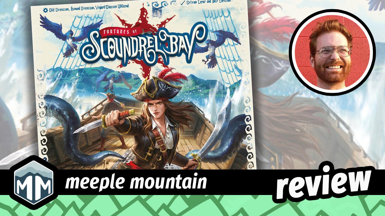 Fortunes of Scoundrel Bay has, on the surface, everything that makes me typically dismiss the latest eurogame from the assembly line: It’s clearly inspired by Alexander Pfister’s Maracaibo and Boonlake, it has questionably silly cover art, and maybe one of the most generic and forgettable “this is a pirate game” names of all time (honestly, we accidentally called it “Scoundrels of Fortune Bay, Bay of Scoundrels, Founders of Fortune Bay, etc.) I was surprised to just have a great time with Fortunes of Scoundrel Bay (FoSB). It’s always a treat to be delighted by the mechanical flourishes in a design, and this one has plenty of thoughtful choices that come together in a surprisingly mid-weight package. We’re pirates, yar, but we’re also homebodies Fortunes of Scoundrel Bay has an interesting rhythm compared to many games that feature seafaring as a central theme. Instead of sail, sail, sail, you are often sailing 1 or 2 spaces, then you’re doing a bunch of different activities for several rounds, then you might sail another space. The arrangement of the board is the shape of a bay, rather than a large expanse of ocean, and this is reflected in how the game plays. You’re more of a pirate party barge than a terrifying group of cutthroats. These pirates love to hang. … The post Fortunes of Scoundrel Bay Game Review appeared first on Meeple Mountain.