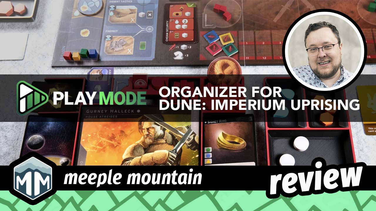 It’s rare to get an opportunity to review an organizer, and I’m a sucker for a good organization system. Half the appeal of games like Eclipse: Second Dawn for the Galaxy for me comes from the insanely sleek storage trays. When PlayMode asked if we’d be interested in covering their new inserts for the Dune: Imperium games, I immediately jumped at the opportunity. Readers may recall that I was very high on Dune: Imperium - Uprising in my review. The box arrived from PlayMode and took up space on my shelf for a month or two while my busy travel schedule kept me from digging into it. It is, after all, quite the behemoth of a box at first glance, and even starting to figure out how everything fits together is a tall task. Finally, I found myself free on a recent Sunday, and my husband and I sat down. We dumped the contents of both Dune: Imperium - Uprising and its Bloodlines expansion out on our game table and tossed the included cardboard inserts. Let’s tackle this thing. Buy the PlayMode Dune Imperium Uprising & Bloodlines Playsystem. Building the Stronghold Fresh out of the box, the PlaySystem can definitely take your breath away. We pulled out roughly two dozen individual components, which made the process feel… The post PlayMode Dune Imperium Uprising & Bloodlines Playsystem Review appeared first on Meeple Mountain.