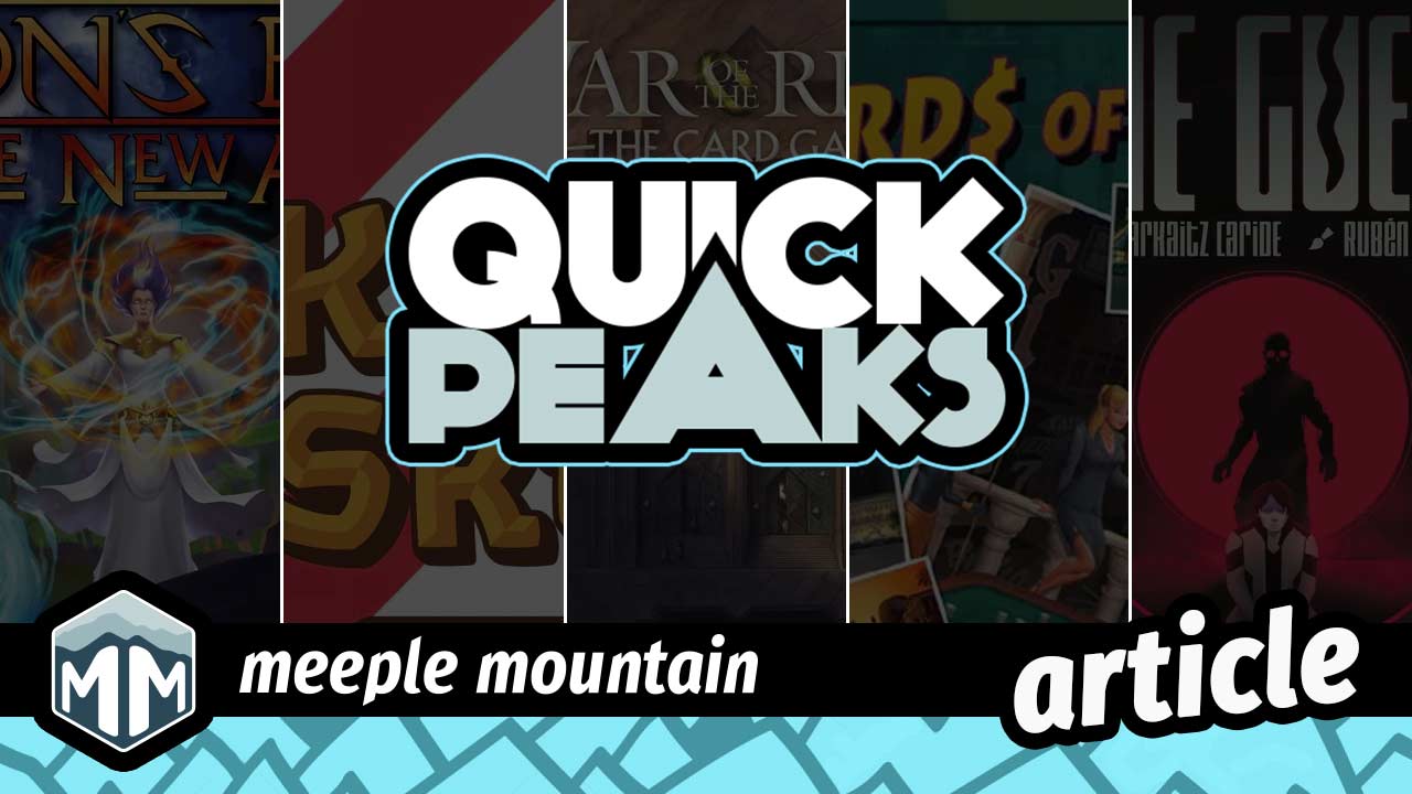 Aeon’s End: The New Age - Andrew Lynch Indie Board & Card Games took their foot off the gas just a little with The New Age, by which I mean it isn’t nearly as punishing as War Eternal. The New Age introduced Aeon’s End’s campaign system, which would become de rigueur for their future releases, and those of us who’ve played Aeon’s End before will know that that’s a mixed blessing. The constant injection of new cards and powers is great, but the writing…well. Nobody plays Aeon’s End for the quality of the writing. You win some and you lose some. If you play Aeon’s End enough, you’ll lose quite a bit, in fact. Ease of entry? ★★★★☆ - The odd bump or two Would I play it again? ★★★★☆ - Would like to play it again Read more articles from Andrew Lynch. Kraken Skulls! - Kevin Brantley Kraken Skulls! puts 2–5 players at the helm of a pirate ship, chasing the most fame to become the king (or queen!) of the pirates. Players bounce between a random selection of dice mini-games (via cards) laid out in a circle, mixed with open-water cards that house the dreadful… The post Quick Peaks – Aeon’s End: The New Age, Kraken Skulls!, War of the Ring: The Card Game – Fire and Swords, Lords of Vegas, The Guest appeared first on Meeple Mountain.